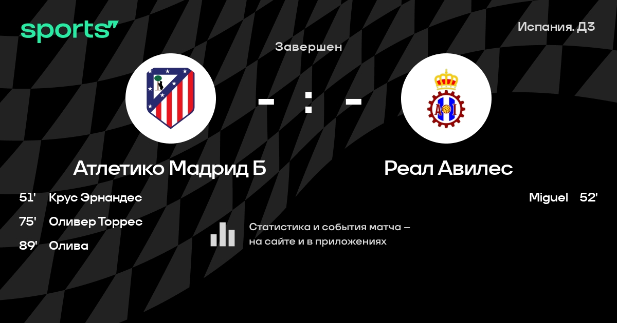 Трансляция Атлетико Мадрид Б - Реал Авилес