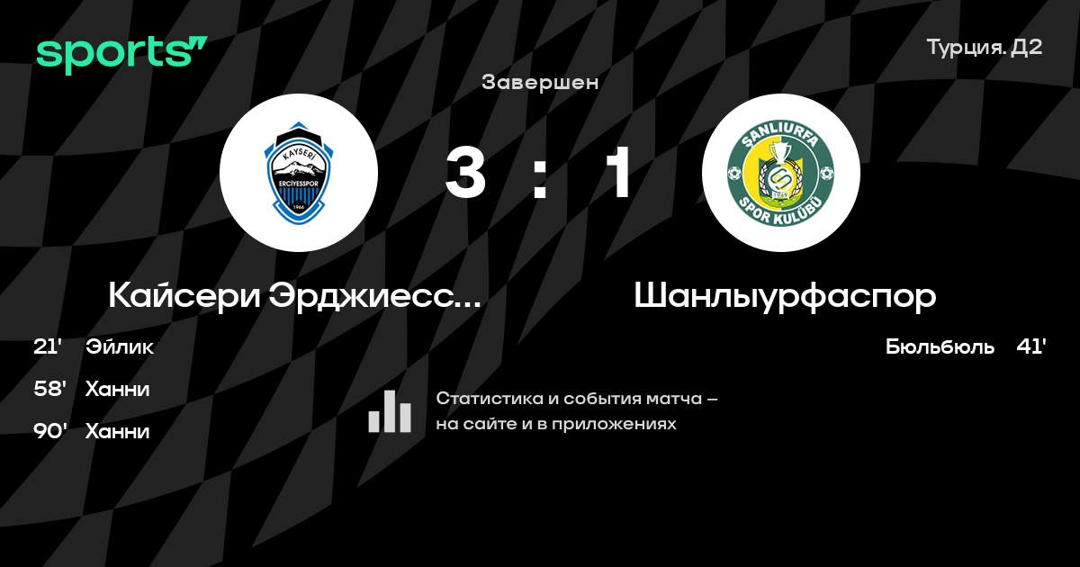 Трансляция Кайсери Эрджиесспор - Шанлыурфаспор