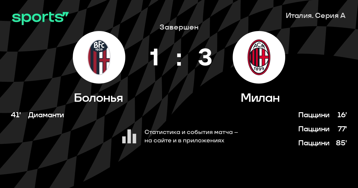 | 3 | Милан | 38 | 21 | 9 | 8 | 67 | 39 | +28 | 72 | ||