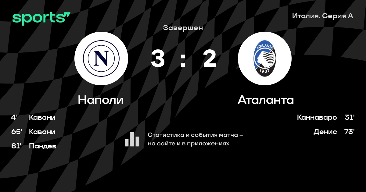 де Санктис - Гамберини, Каннаваро, Кампаньяро - Суньига, Джемаили, Бехрами, Гамшик, Маджо - Кавани, ПандевЗапасные: Коломбо, Розати, Роланду, Грава, Армеро, Инлер, Место, Эль-Каддури, Инсинье, Калайо
