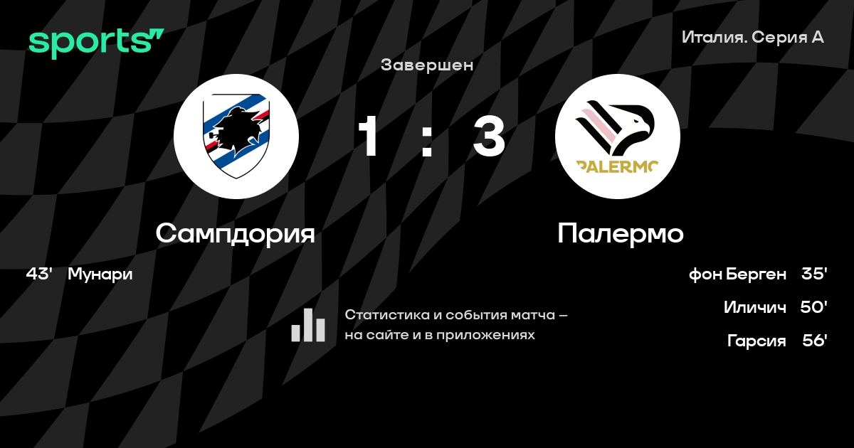Ромеро - Коста, Паломбо, Гастальделло - Сориано, Эстигаррибия, Де Сильвестри, Обианг, Мунари - Икарди, ЭдерЗапасные: Анжело, Берни, Берарди, Мустафи, Кастеллини, Россини, Родригес, Ренан, Лопес, Сансоне