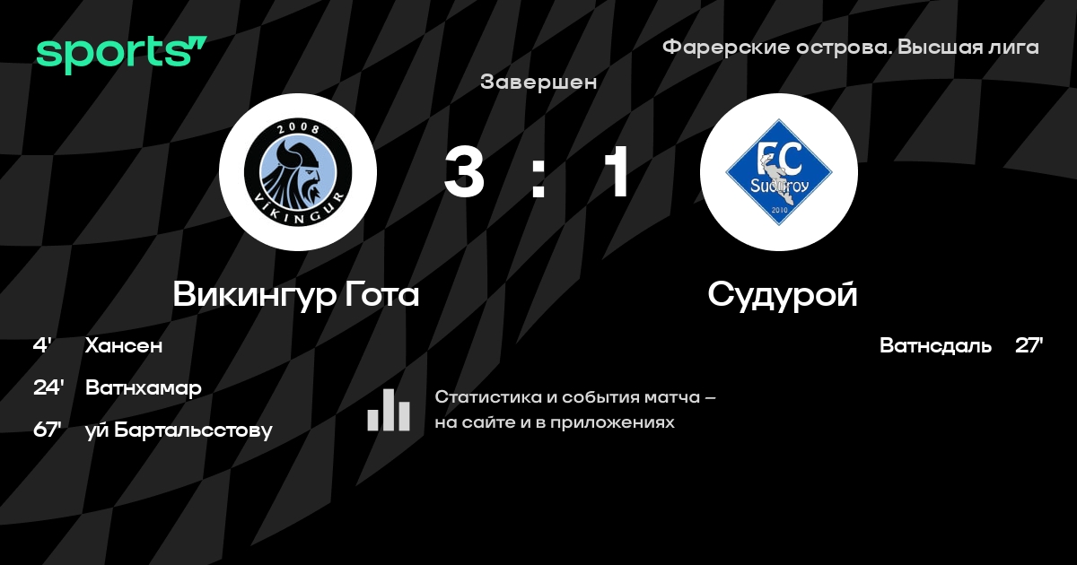 Тури - Якобсен, Грегерсен, Хансен, Якобсен, Niclasen, Юрхуус - Ватнхамар, Хансен, Blé - уй БартальсстовуЗапасные: Ryggshamar, Хансен, Bassene, Джорджевич