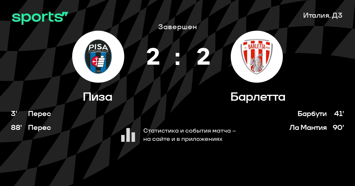Пиза играет вничью в 3 последних очных встречах в турнире «Италия. Д3»