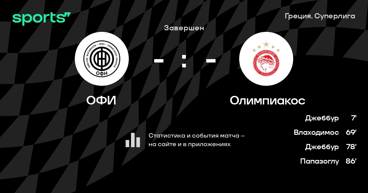 Медьери - Пападопулос, Папазоглу, Манолас, Холебас - Фейса, Машаду, Абдун, Влаходимос, Греко - ДжеббурЗапасные: Кэрролл, Контрерас, Сиовас, Маньятис, Фетфацидис, Митроглу