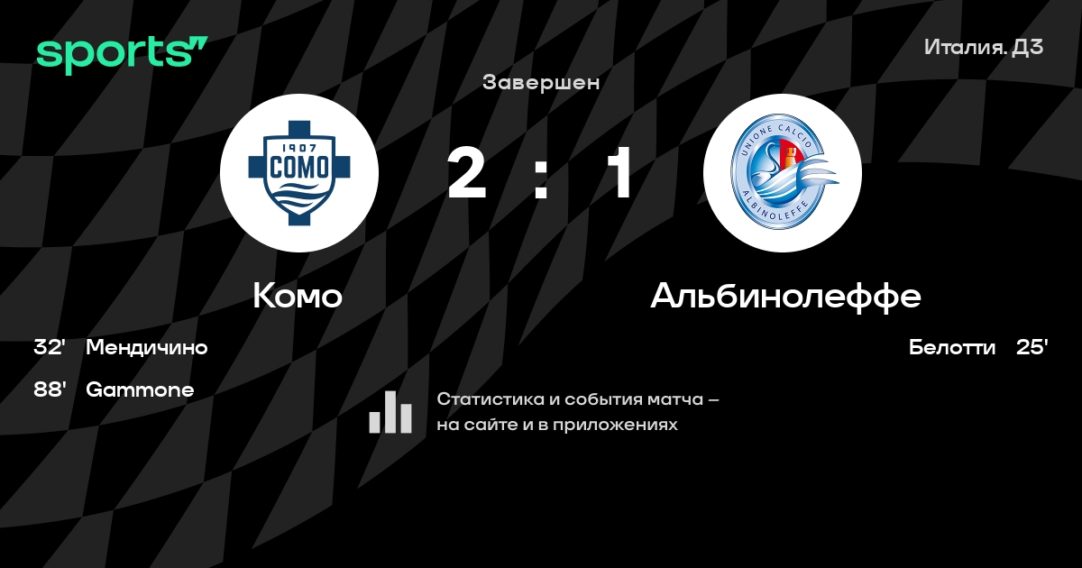 Оффреди - Belotti, Pirovano, Алльеви, Сальви - Джиразоле, Maietti, Corradi, Тогурдо - Белотти, ПезентиЗапасные: Amadori, Ambra, Ондеи, Превитали, Pontiggia, Сиссе, Diakite
