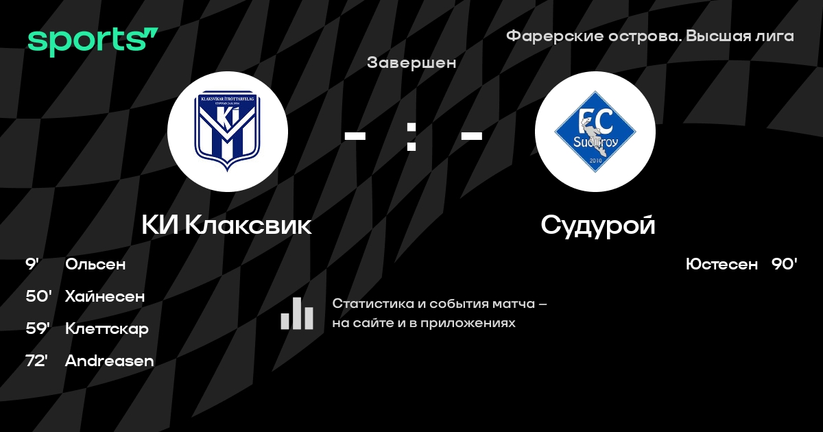Ганго - Hammer, Симонсен - Joensen, Christiansen, Юстесен, Ольсен, Клакстейн, Якобсен - Клеттскар, ХайнесенЗапасные: , Миккельсен, Якобсен, Хайнесен, Andreasen