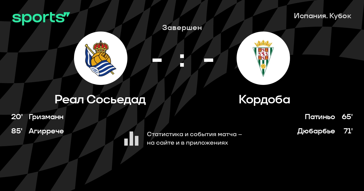 Субикараи - Хосе Анхель, Эстрада, Мартинес, Гонсалес - Пардо, Чори Кастро, Сурутуса, Ильярраменди - Гризманн, АгирречеЗапасные: Браво, Мартинес, Рос, Прието, Ифран, Вела