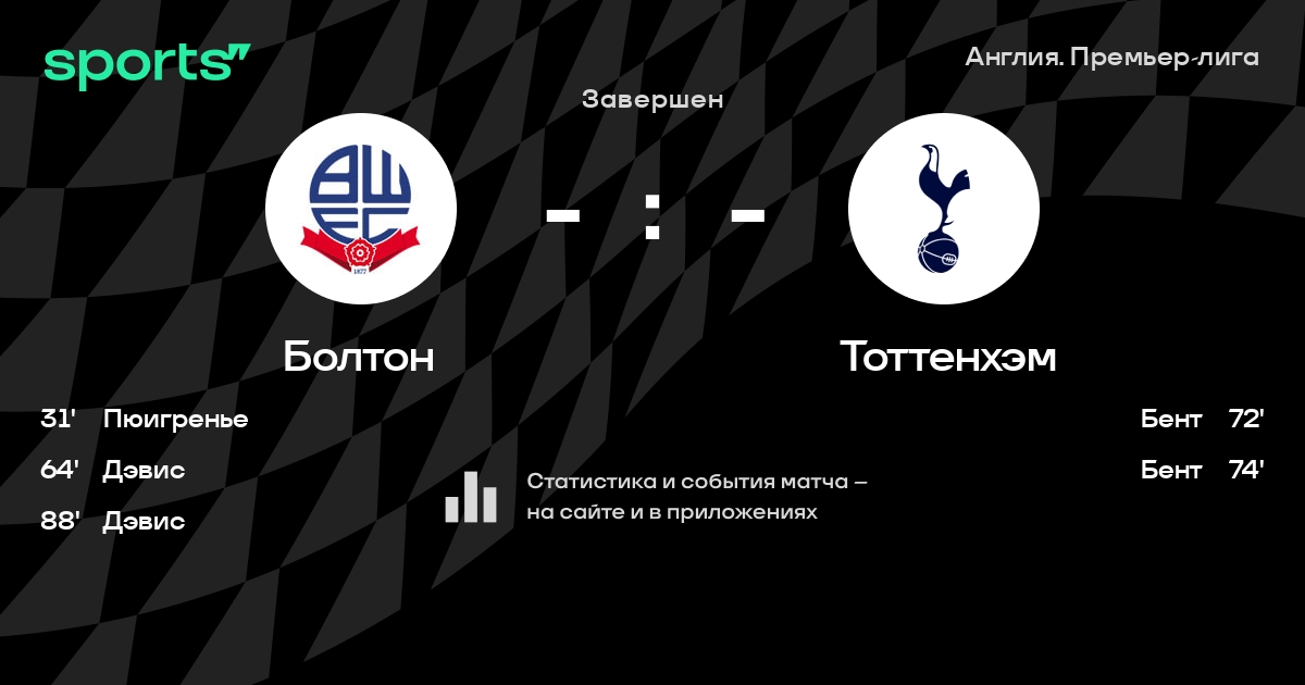 Кудичини - Ассу-Экотто, Доусон, Вудгейт, Чорлука - Леннон, Паласиос, Зокора, Модрич, Бентли - ПавлюченкоЗапасные: Эник, Шимбонда, Дженас, Хаддлстоун, Кэмпбелл, Бэйл, Бент