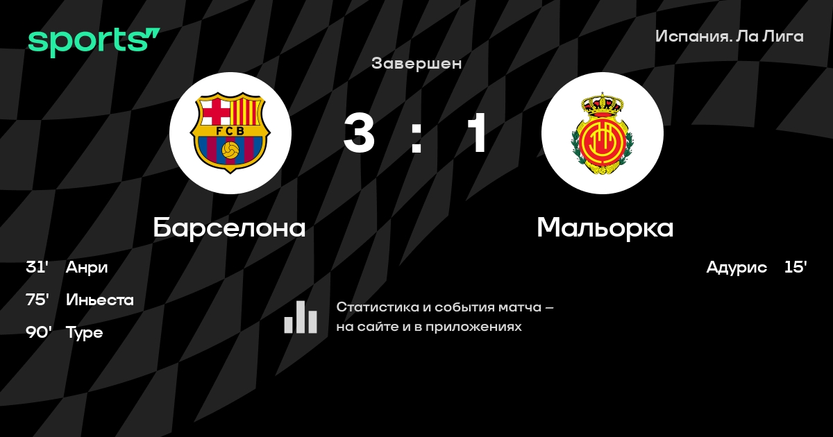 Вальдес - Пуйоль, Абидаль, Маркес - Туре, Хави, Санчес, Глеб - Анри, Это'О, ГудьонсенЗапасные: Пинто, Дани Алвес, Бускетс, Кейта, Иньеста, Кркич