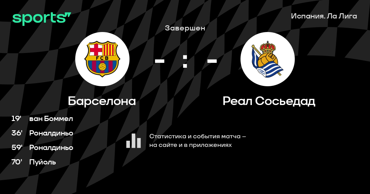 Вальдес - Пресас, Силвиньо, Пуйоль, Эдмилсон - Жюли, Роналдиньо, Хави, Иньеста, ван Боммел - Это'ОЗапасные: , Лопес, Месси, Эскерро