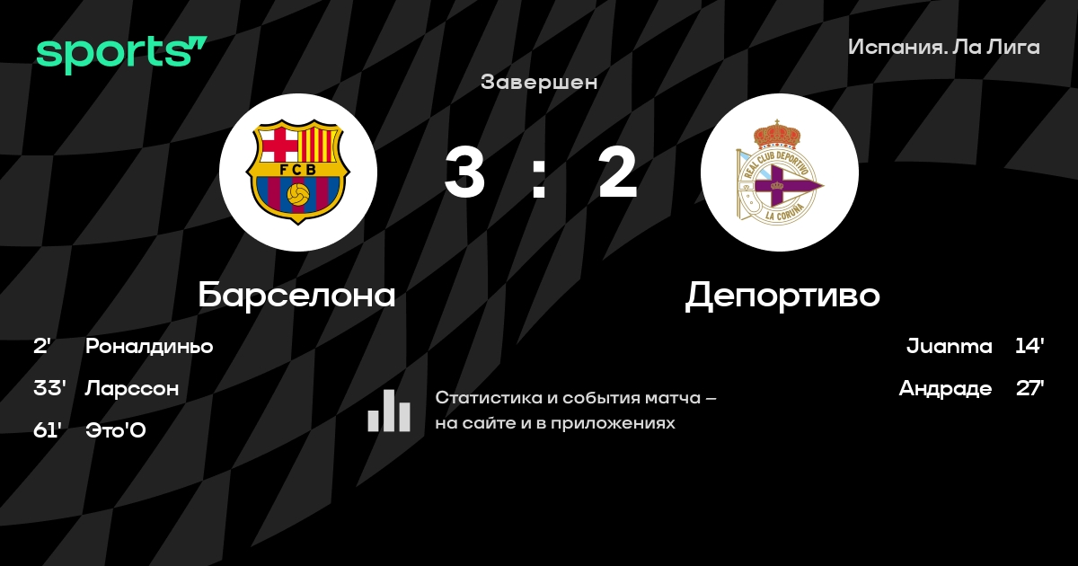 Вальдес - Силвиньо, Эдмилсон, Пуйоль, Беллетти, Маркес - Деку, Иньеста, Роналдиньо - Это'О, LarssonЗапасные: , Пресас, Эскерро