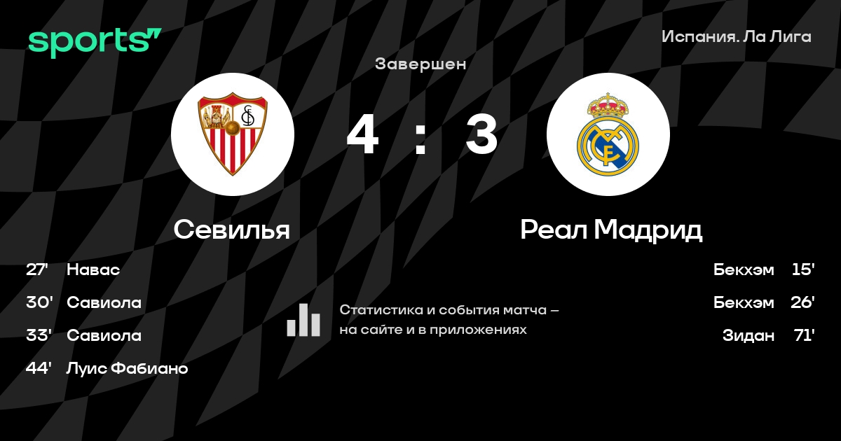 Касильяс - Сисиньо, Роберто Карлос, Мехия, Рамос, Сальгадо - Бекхэм, Гути, Зидан - Жулио Баптиста, РаульЗапасные: Диего Лопес, Павон, Браво, Диого, Хурадо, Бальбоа, Сольдадо