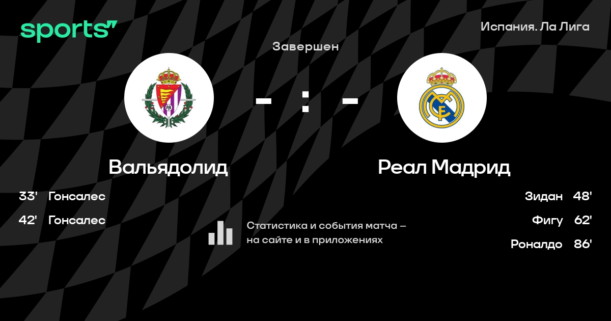 Касильяс - Мехия, Эльгера, Сальгадо - Бекхэм, Солари, Фигу, Гути, Зидан - Рауль, РоналдоЗапасные: Санчес, Хуанфран, Павон, Нуньес, Портильо