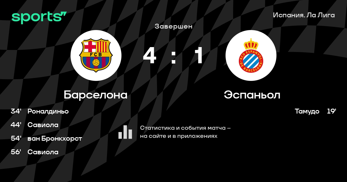 Вальдес - Пресас, ван Бронкхорст, Райцигер - Давидс, Роналдиньо, Коку, Мотта, Хави, Иньеста - СавиолаЗапасные: Речбер, Куарежма