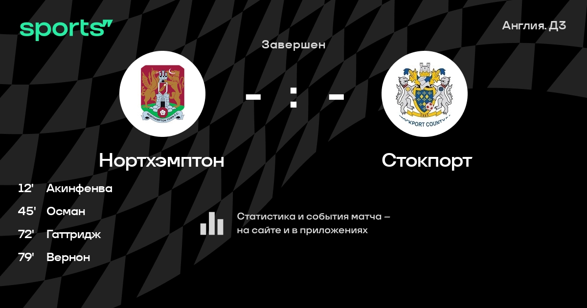 Данн - Хьюз, Doig, Джекмэн, Кроу - Осман, Коук, Гаттридж, Дэвис - Прийович, Акинфенва