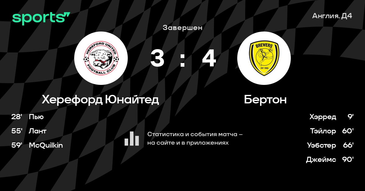 Крысяк - Corbett, Уэбстер, Джеймс, Паркс - McGrath, Тэйлор, Филлипс, Магома - Pearson, Хэрред