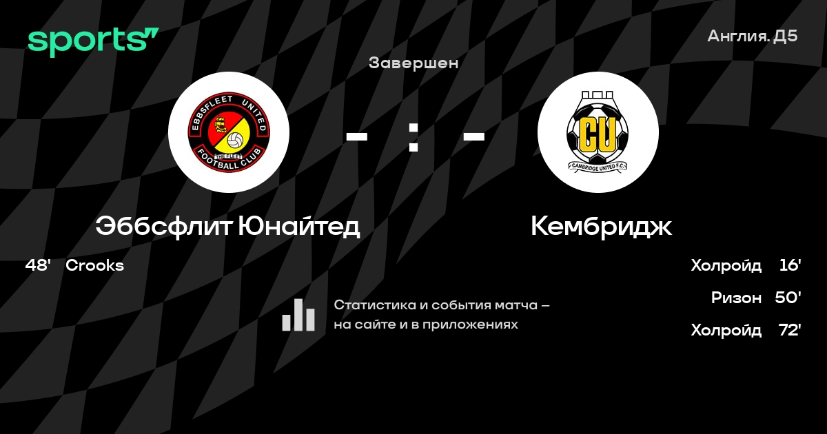 Трансляция Эббсфлит Юнайтед - Кембридж