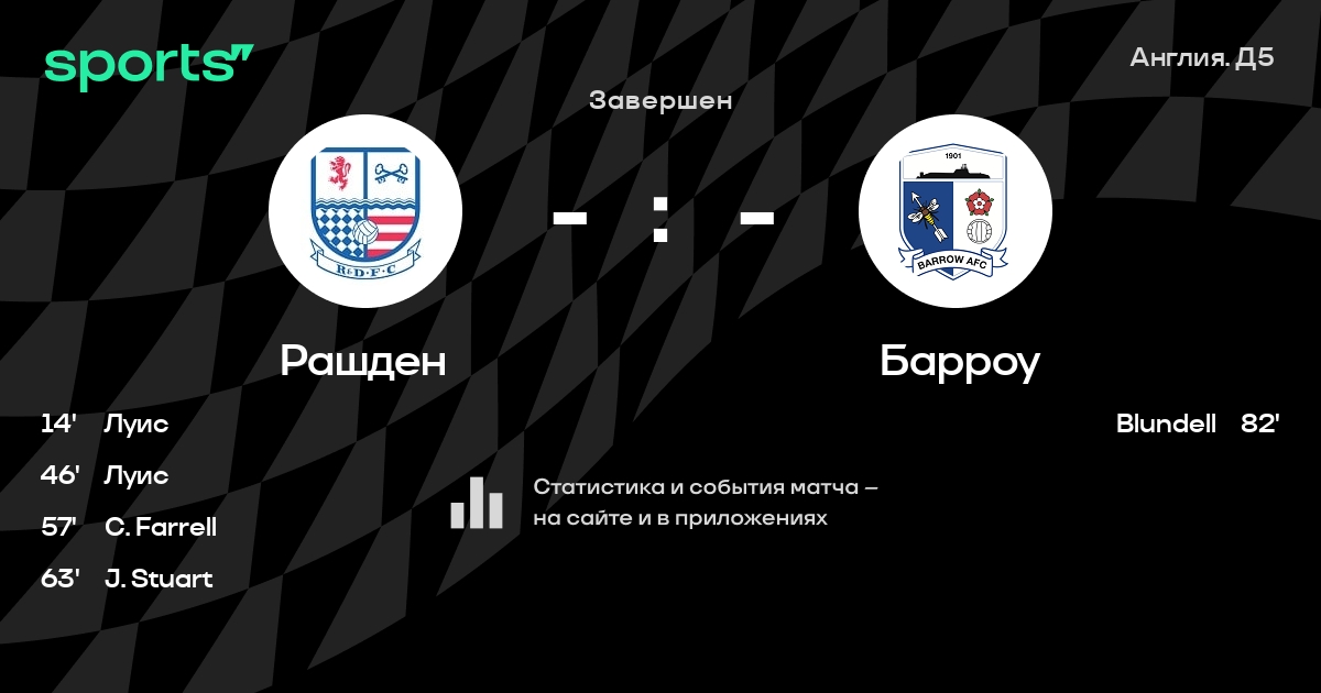 Roberts - Осано, Даунер, Stuart, Robinson - Wolleaston, Бирн, Terry - Луис, Farrell, Томлин