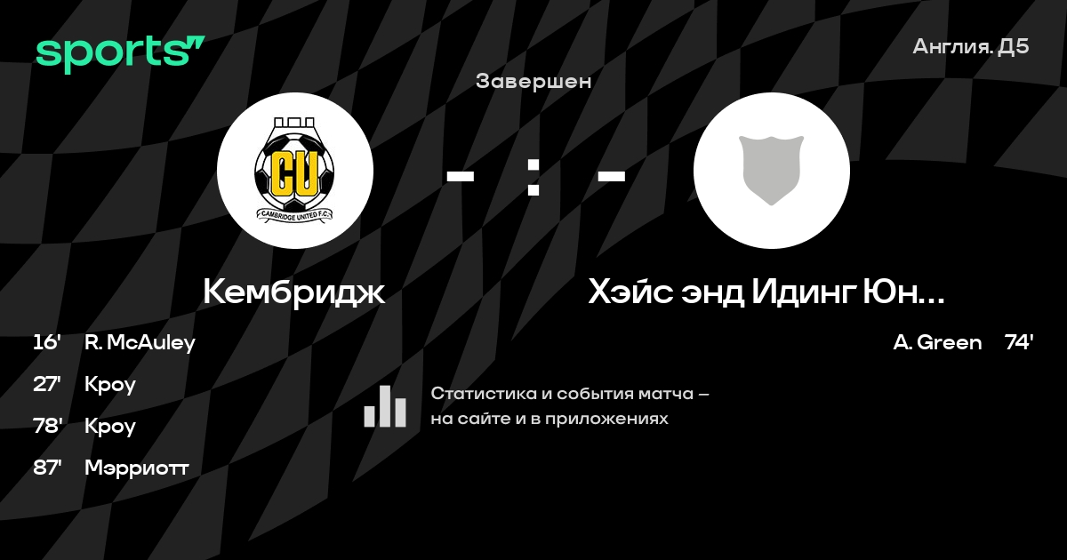 Кембридж - Хэйс энд Идинг Юнайтед: статистика матча
