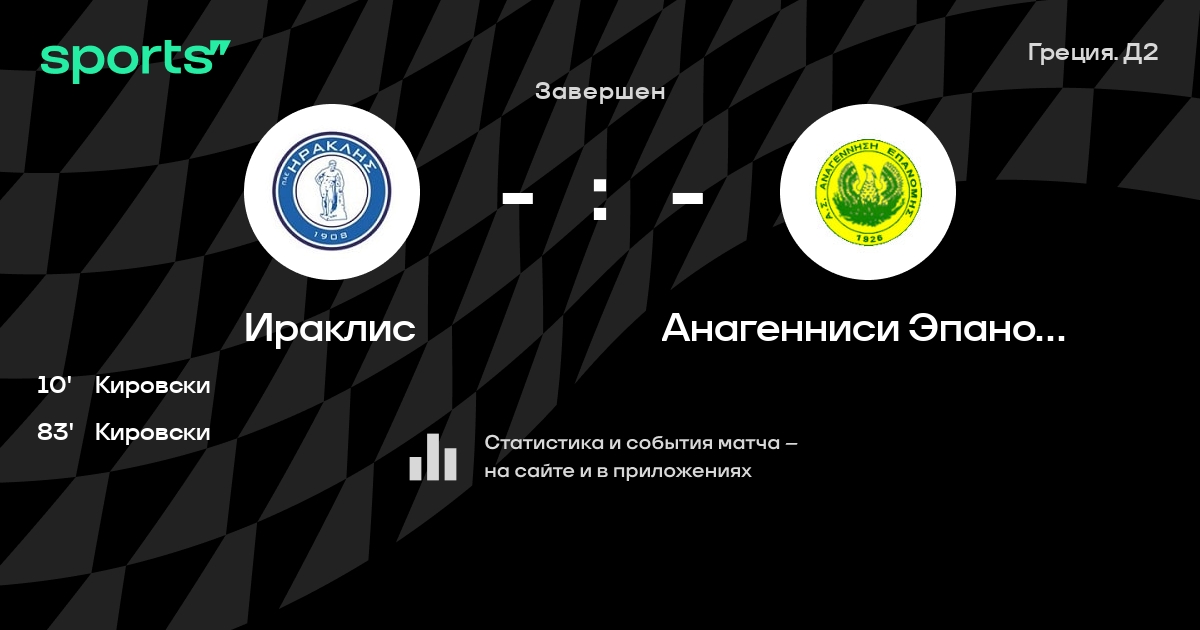 Уандерсон - Savvidis, Tserkezos, Papasterianos - Soulidis, Natsouras, Paligeorgos, Fernandes de Sousa Almeida, Jové Rubi, Georgiou - КировскиЗапасные: Восниадис, Kragiopoulos, Sarafoglou, Datidis, Сиатраванис, Chionidis, Alexiou