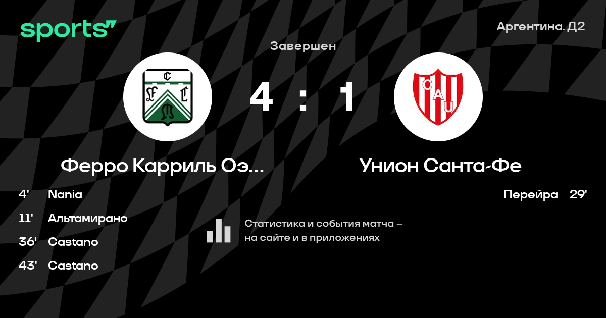 Ферро Карриль Оэсте – Унион Санта-Фе: коэффициенты