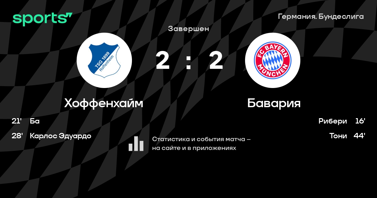 Хильдебранд - Комппер, Ворса - Луис Густаво, Карлос Эдуардо, Салихович, Вайс - Луис, Ба, ОбасиЗапасные: Хаас, Фабрисио, Конрад, Янкер, Гросс, Терраццино