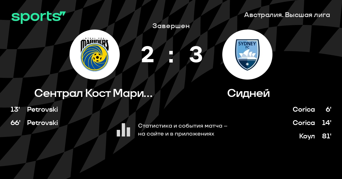 Сентрал Кост Маринерс – Сидней: коэффициенты
