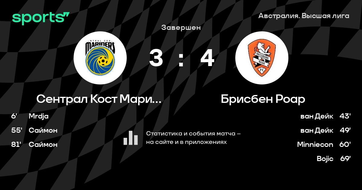 Трансляция Сентрал Кост Маринерс - Брисбен Роар