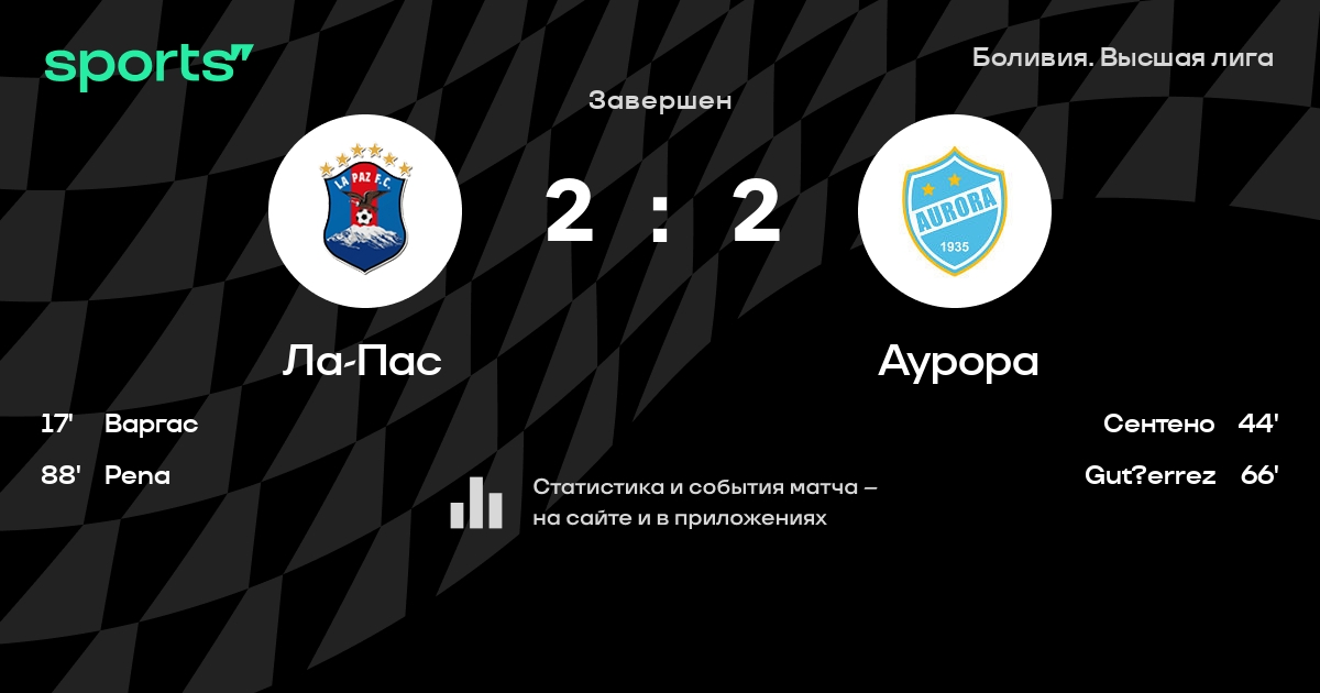 | 2 | Ла-Пас | 22 | 10 | 7 | 5 | 44 | 30 | +14 | 37 | ||