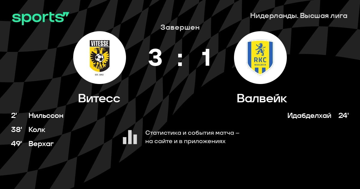 Велтхайзен - Спрокел, Йонг-а-Пин, ван Дирмен, Верхаг, ван дер Стрейк - Молхук, Хофс, Клаудемир - Нильссон, Колк