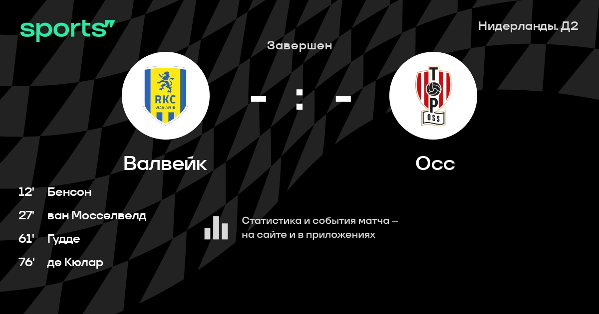 Звартуд - Сноил, ван Мосселвелд, Мюлдер, Гудде, Мюлдер - Obodai, Berger - де Кюлар, Бенсхоп, Бенсон