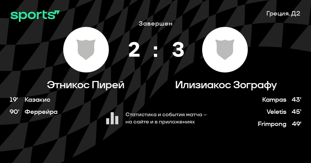 Этникос Пирей - Илизиакос Зографу: статистика матча