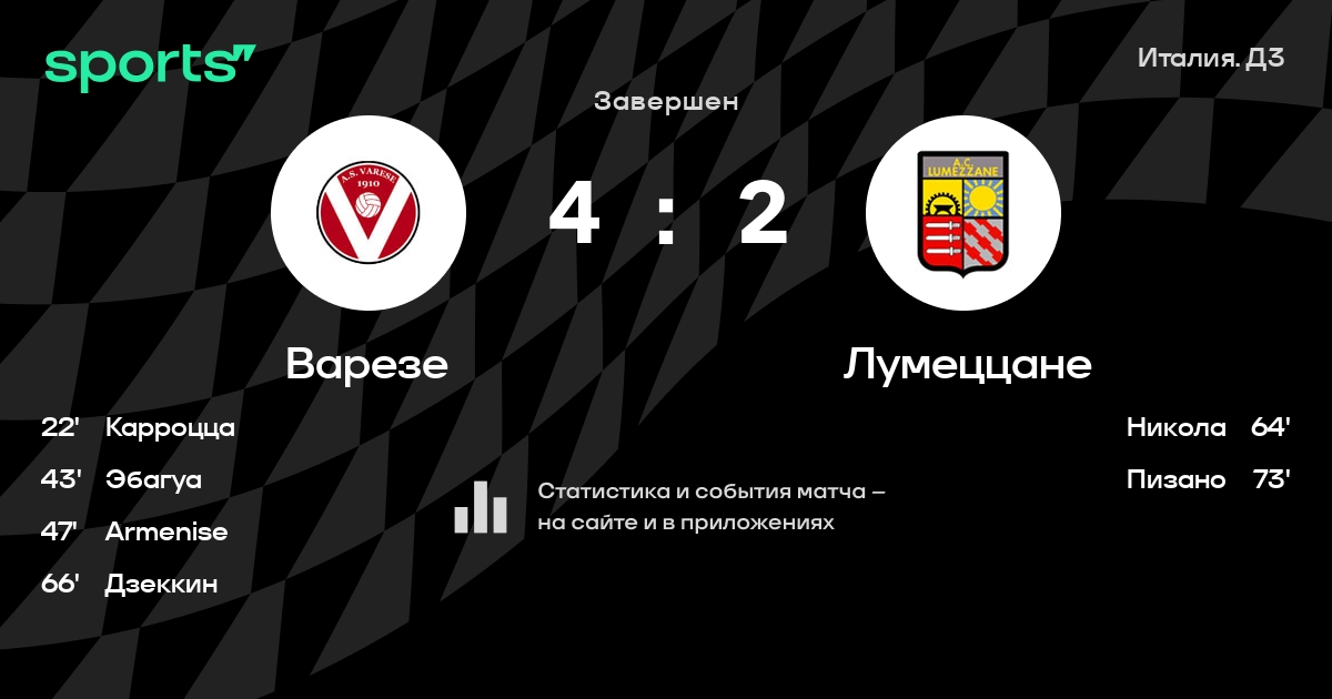 Моро - Камиза, Пизано, Бернардини - Дзеккин, Будзеголи, Корти, Карроцца, Armenise - Эбагуа, Del Sante
