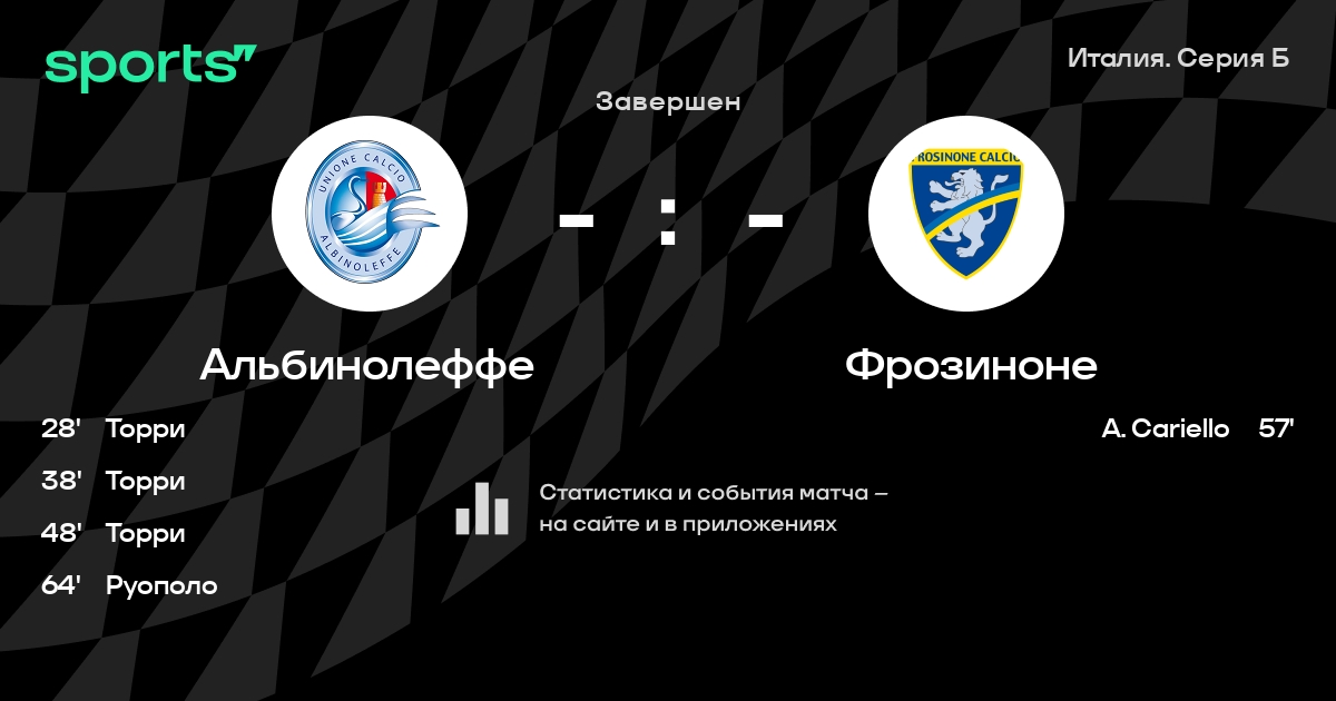 Сичиньяно - Дель Прете, Scarlato, Майетта, Боккетти - Cariello, Больцони, Баша - Мадзео, Santoruvo, Aurelio