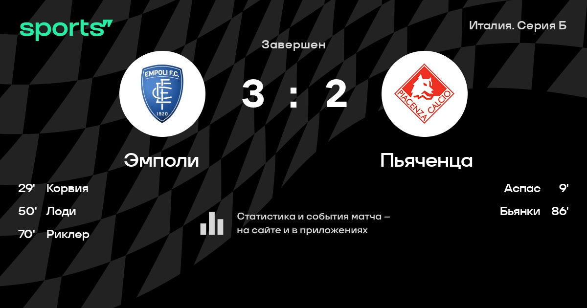 | 5 | Эмполи | 42 | 18 | 13 | 11 | 53 | 44 | +9 | 67 | ||