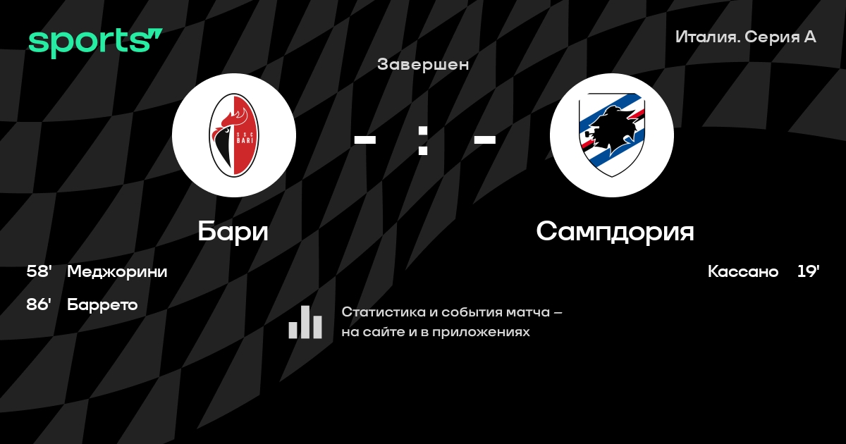 Сторари - Циглер, Гастальделло, Росси, Дзаури - Паломбо, Тиссоне, Губерти, Маннини - Кассано, ПацциниЗапасные: Гвардальбен, Падалино, Аккарди, Поли, Тестарди, Щепович