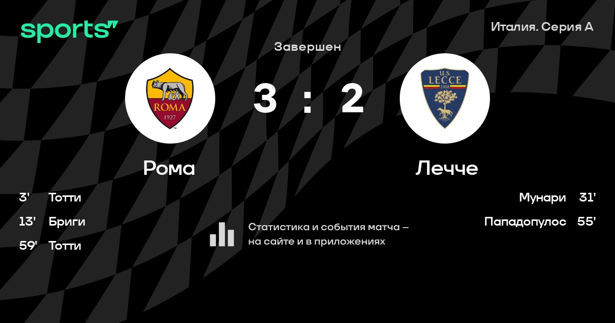 Артур Мораес - Мотта, Тонетто, Диамутен, Риисе - Бриги, де Росси, Писарро, Перротта - Жулио Баптиста, ТоттиЗапасные: , Лория, Таддеи, Рибейро, Д'Алессандро