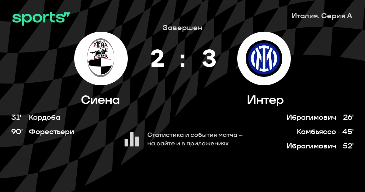 Жулио Сезар - Матерацци, Дзанетти, Кордоба, Киву, Майкон, Максвелл - Хименес, Камбьяссо - Ибрагимович, КрусЗапасные: Орландони, Бурдиссо, Gomes Passos, Сезар, Балотелли