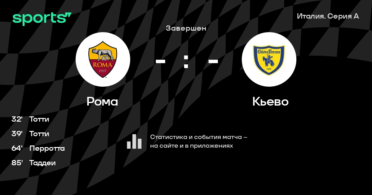 Дони - Киву, Мексес, Пануччи, Бово - де Росси, Перротта, Томмази, Таддеи, Аквилани - ТоттиЗапасные: Курчи, Рози, Альварес, Харджа, Дакур, Окака Чука