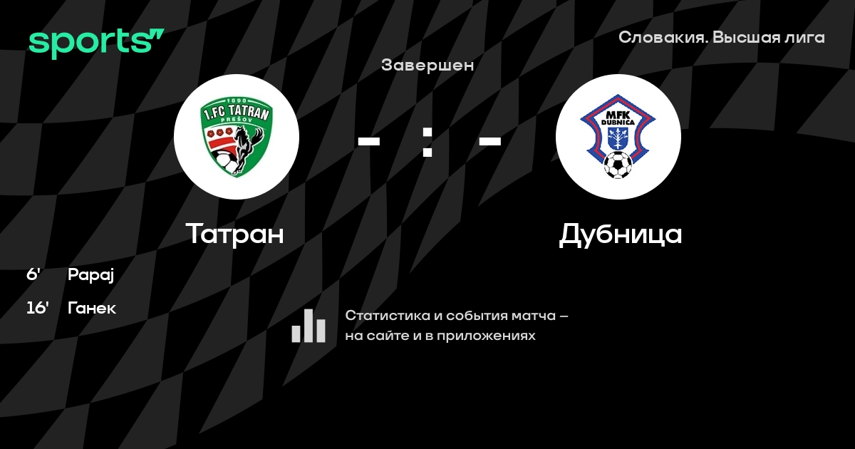 | 8 | Татран | 33 | 11 | 5 | 17 | 32 | 38 | -6 | 38 | ||