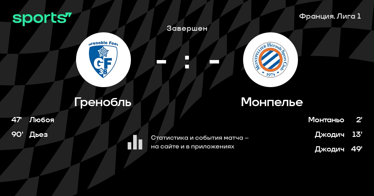 | 5 | Монпелье | 38 | 20 | 9 | 9 | 50 | 40 | +10 | 69 | ||