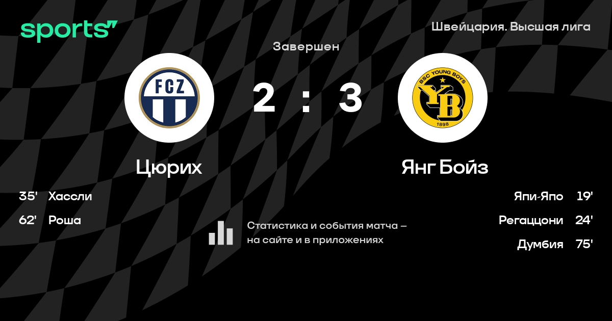 Вельфли - Гезаль, Дудар, Аффольтер, Суттер - Деген, Регаццони, Япи-Япо, Хохштрассер - Думбия, Шнойвли