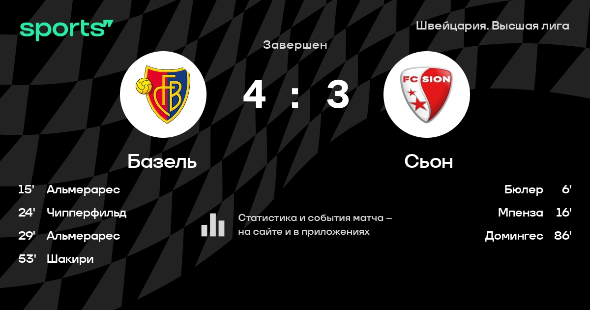 Коломба - Сафари, Инкум, Абраам, Атан - Чипперфильд, Хуггель, Шакири, Хелаберт - Альмерарес, Зуа