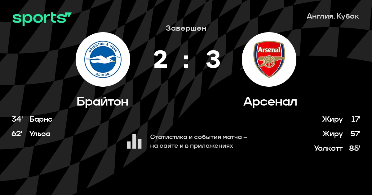 «Брайтон» – «Арсенал» – 2:3. Гол Уолкотта принес победу «канонирам»