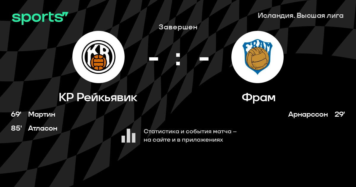 | 1 | КР Рейкьявик | 22 | 23 | 52 | ||