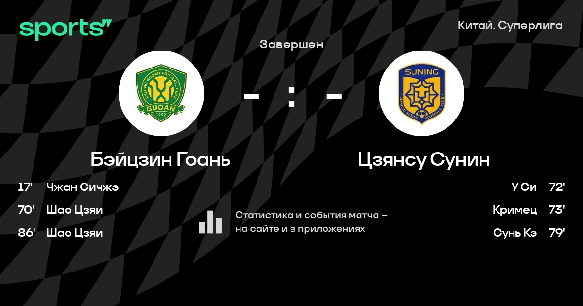 Чжан Сыпэн - Лан Чжэн, Чжан Синьсинь, Чжоу Тин, Сю Юньлон - Пяо Чэн, Матич, Ван Сяолун, Чжан Сичжэ - Кануте, УтакаЗапасные: Хоу Сэнь, Юй Ян, Кримец, Ван Хао, Ян Юнь, Геррон