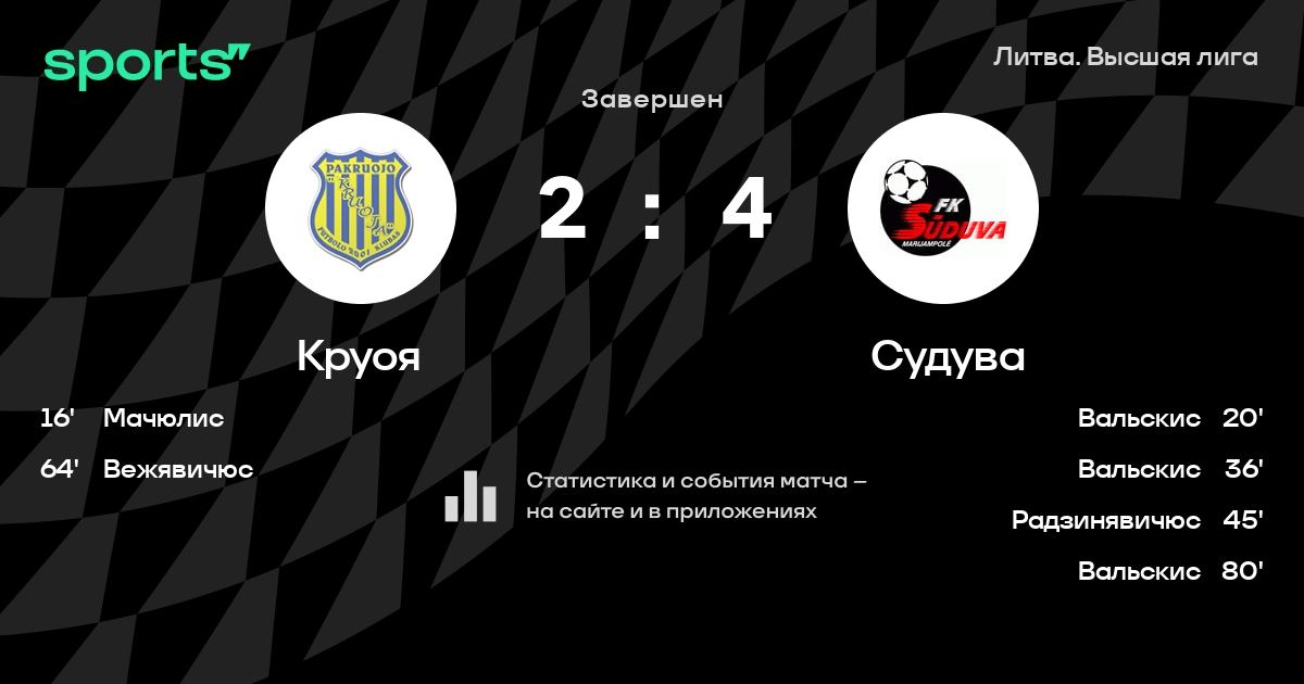 | 4 | Судува | 32 | 18 | 8 | 6 | 73 | 33 | +40 | 62 | ||