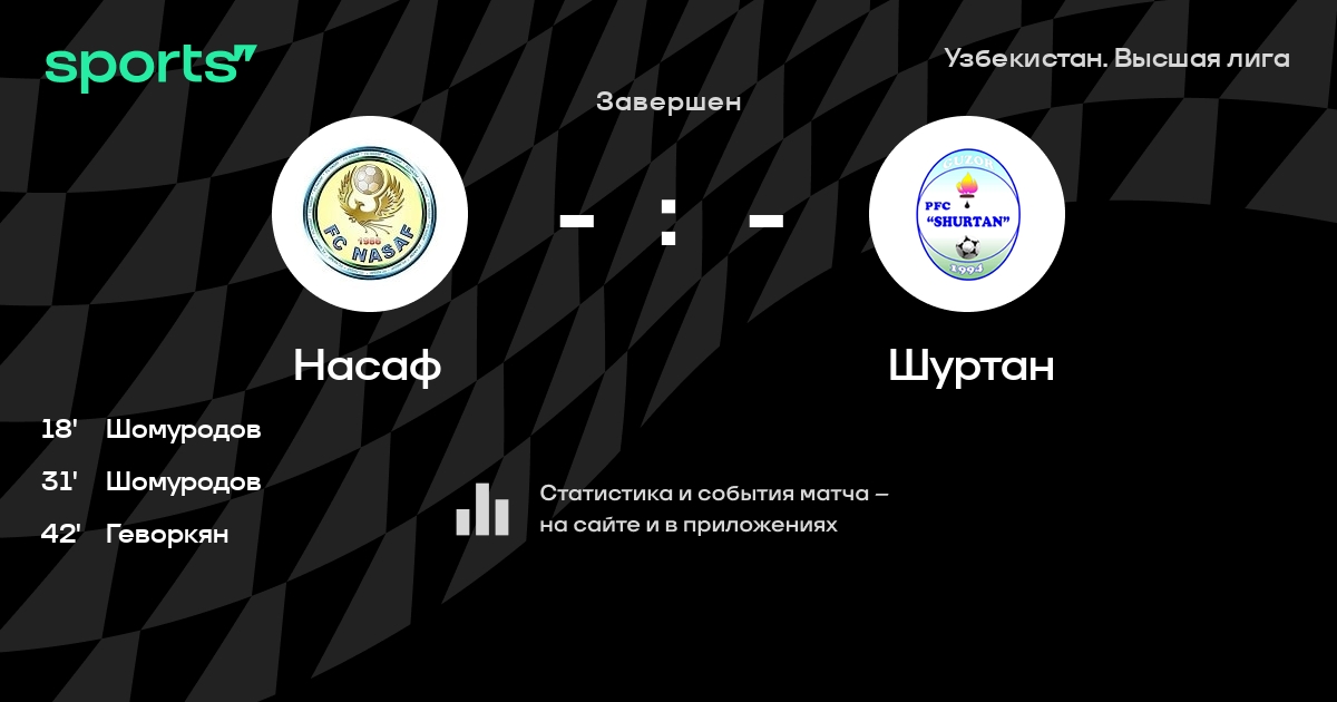 Корнейчук - Аликулов, Журабоев, Крушельницкий, Raimkulov, Абибуллаев - Khazigaliyev, Пономарев, Омонов, Соломин - QodirqulovЗапасные: Леус, Отакулов, Интизимов, Vostrikov, Raupov, Отахонов, Жумабоев