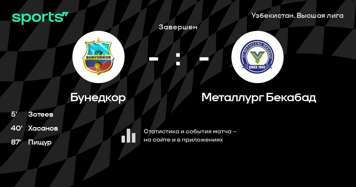 Нестеров - Жураев, Гафуров, Зотеев, Филипосян, Жураев - Иброхимов, Хасанов, Тураев - Пищур, ТаранЗапасные: Тураев, Хожиакбаров, Блажич, Пардаев, Мусаев, Рахматуллаев, Рашидов