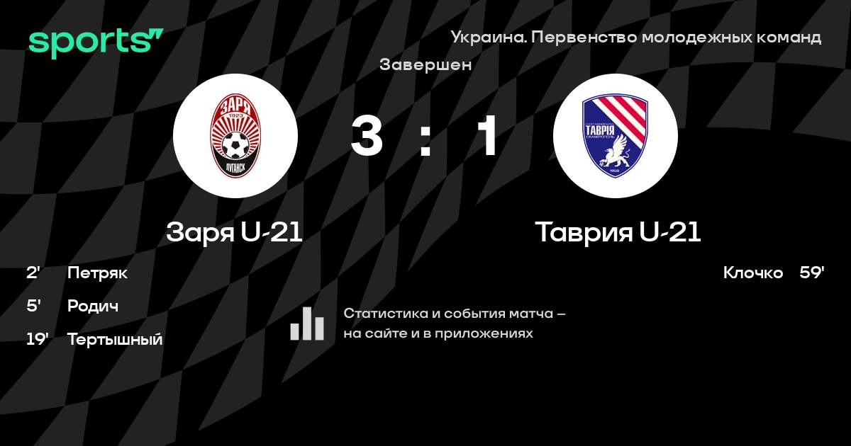 Заря U-21 - Таврия U-21: положение в турнире
